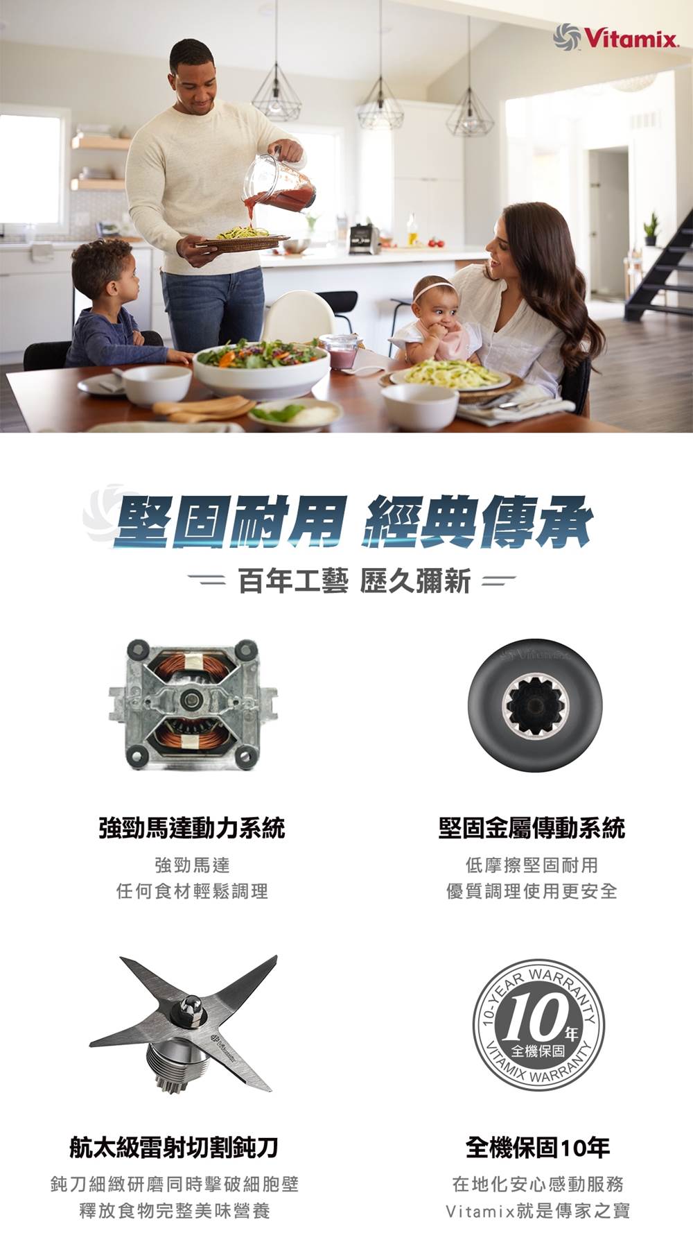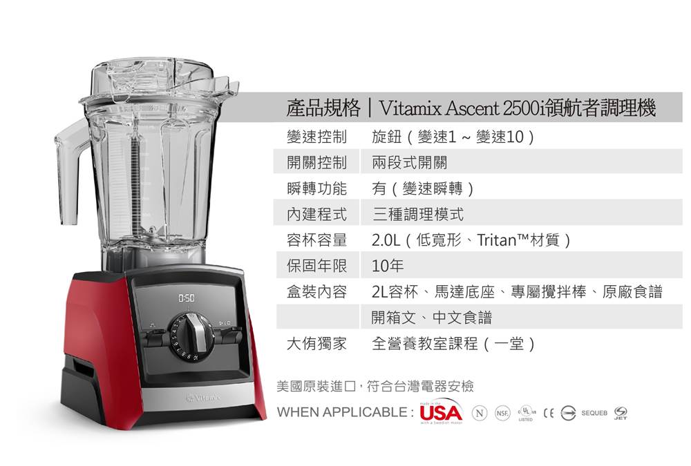 品牌名稱:VitaMix 款式:無加熱 類型:旋鈕式2.0~2.9hp主體 材質:高碳鋼 效能:1001W~1200W 保固期:10年保固期 全機保固10年,台灣官方公司貨,良好售後服務 商品規格 機器型號:VM0207C 商品尺寸:寬21 x深28 x高44cm 容杯容量:2L(低寬型) 容杯材質:食品級Tritan材質 內建程式:果昔、冰品、濃湯 電力規格:110V,50/60Hz,1200W(通過經濟部標準檢驗局EMC檢磁) 瞬轉功能:有(變速瞬轉) 開關控制:旋鈕(變速1~變速10) 產地:美國 商品保固:全機保固10年,台灣官方公司貨,良好售後服務 BSMI商檢字號:R31476 商品內容:2L容杯(含透明上蓋)、攪拌棒、機器、中文說明書 ※請注意,為保障每位消費者購買的機器都是全新未被使用過的,本商品一經使用或過水,除非瑕疵,恕不接受退貨。 配件 2L容杯(含透明上蓋)、攪拌棒、機器、中文說明書 商檢字號 商檢字號:R31476