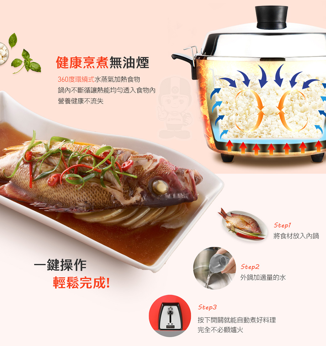 (5) 煮飯/粥、蒸、滷、燉多用途。