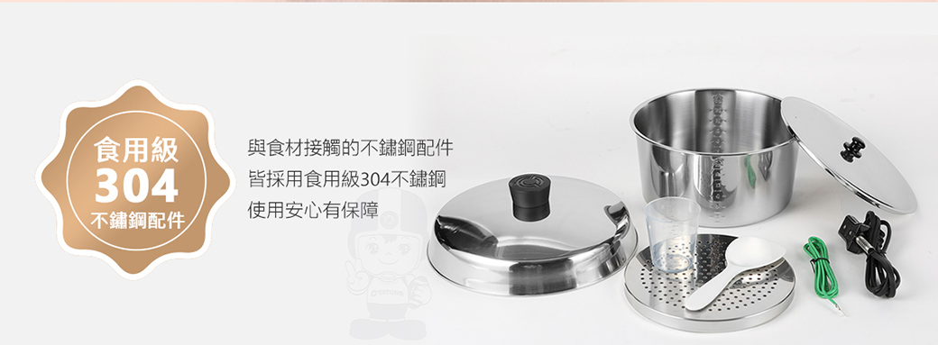 (2) 除了外鍋為鋁質材質,鍋蓋、內鍋、內鍋蓋、蒸盤均為SUS 304 不鏽鋼。