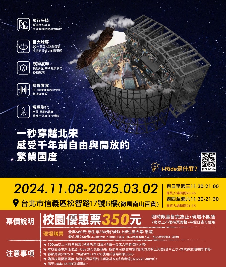 • 校園優惠票價 (7歲以上不限持票資格,現場不販售,平假日皆可使用,春節期間須加價50元)