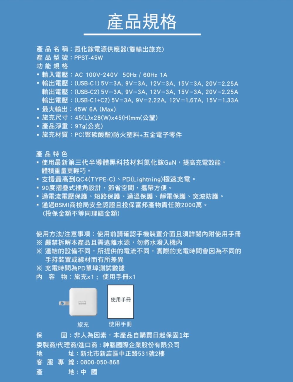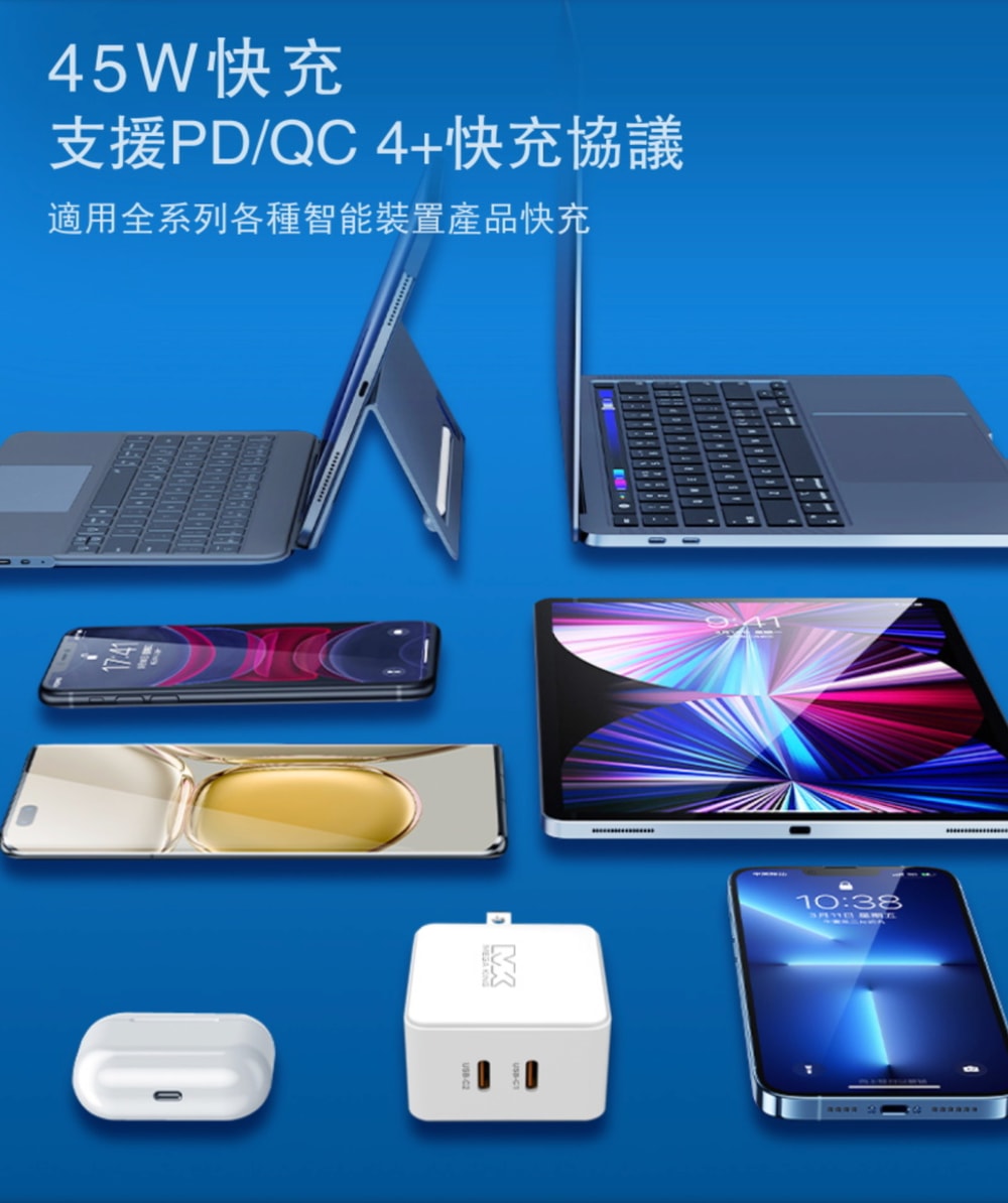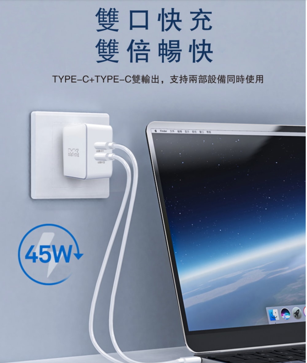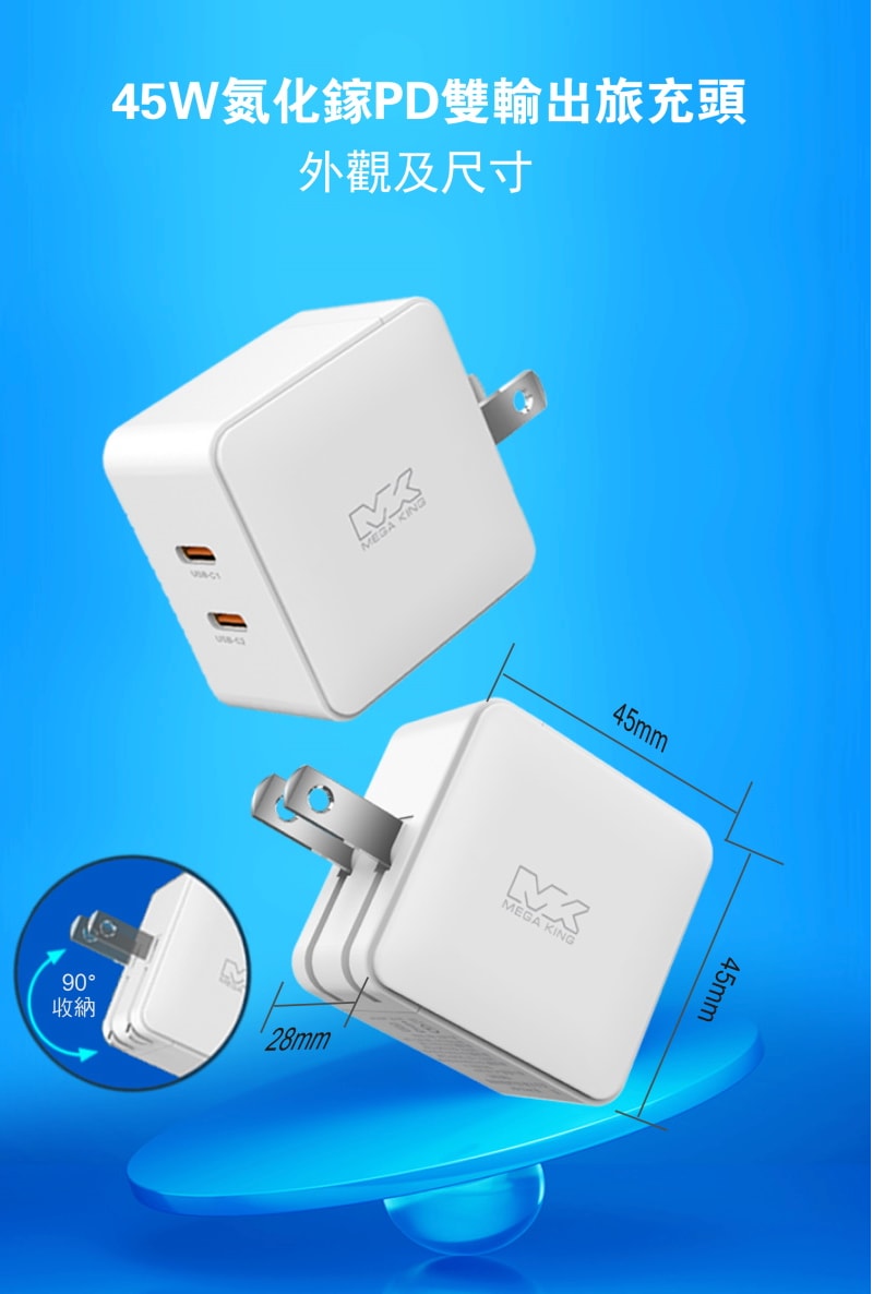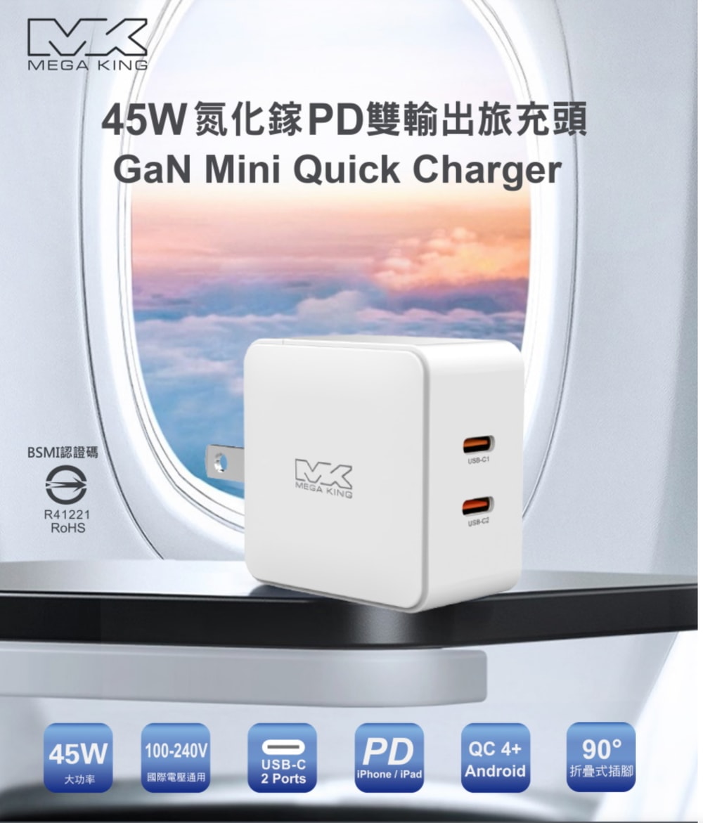 型號:MEGA KING 45W GaN氮化鎵PD雙孔旅充頭