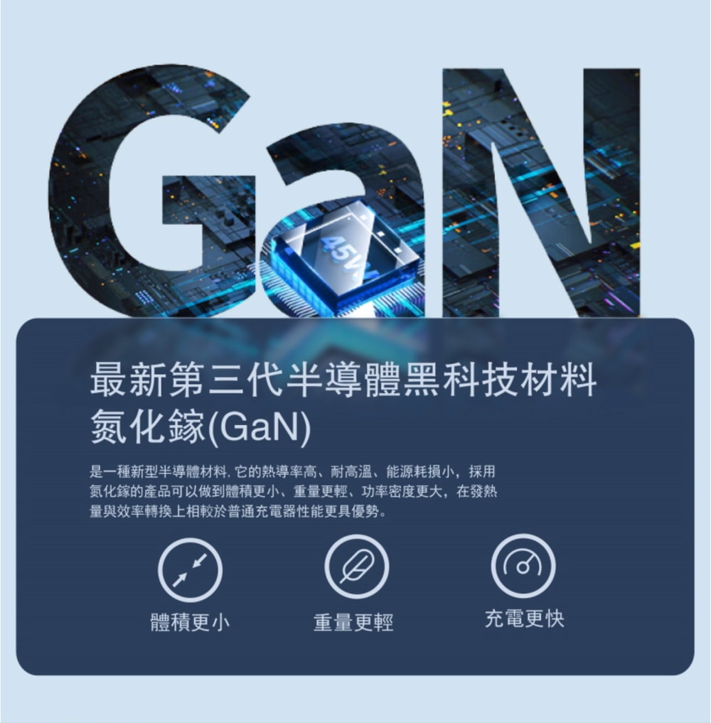 #使用最新第三代半導體黑科技材料氮化鎵Gan,提高充電效能,體積重量更輕巧