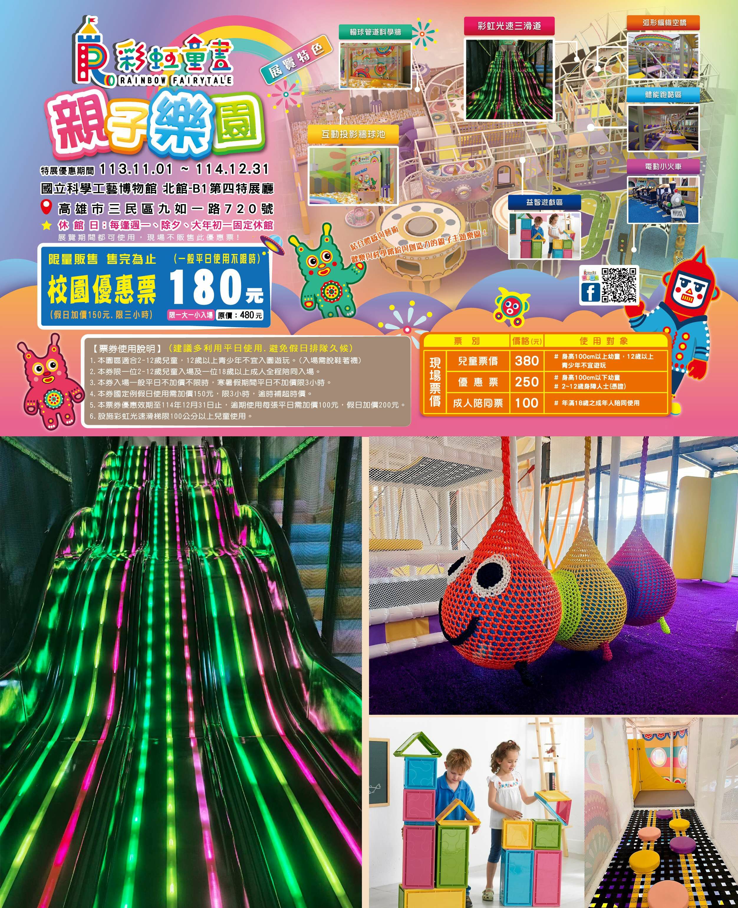 11.彩虹童畫親子樂園客服專線:07-3926333 ( 09:00~17:00 每周一及除夕、年初一休館 )